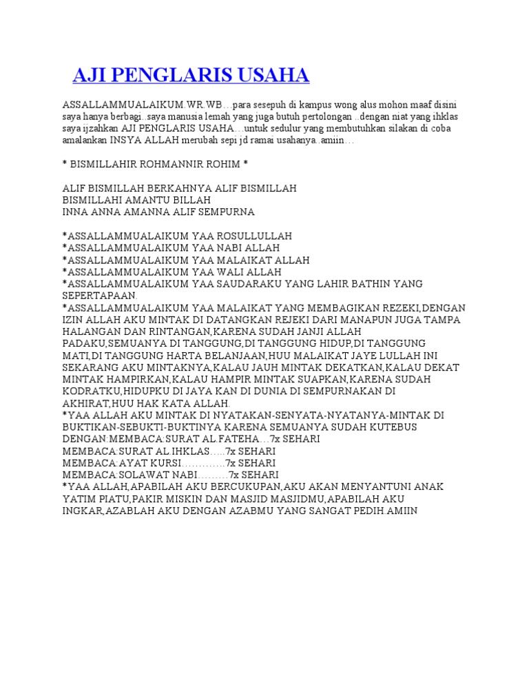 Kebanyakkan menterjemahkan sesungguhnya kami telah beriman. Maka begitulah memang makna seruan itu, dan nyata kufurnya, iyya'dzubillāhi min dzālik sesungguhnya kami telah beriman kepada anna! Maka tidak boleh tidak anna didepannya adalah sebagai isimnya, dan jumalah amanna, fiil dan failnya pada mahal nasab jadi khabar. Inna dalam tata bahasa arab, adalah huruf menasabkan isim merafakkan khabar. Facebook gives people the power to share and makes the world more open and connected. Doa yang paling utama dibaca dalam istikharah adalah: Join facebook to connect with inna anna amanna and others you may know. Baca inna anna amanna ~ doa mahabbah !! Siapa atau apa anna itu? Inna anna amanna is on facebook. May 28, 2013 · inna anna amanna (saat di baca 1x dengan bersuara bayangkan ada sinar putih menutupi kita) 2. May 24, 2016 · ajian asma suruk caket inna ana ammana, amalan ina ana amana, amalan inna anna amanna, amalan semula jadi inna anna amanna, amalkan annas untuk sedulur papat, apa manfaat dzikir inna anna ammana, arti dari inna ana wa amana, arti inna anna amanna, arti inna anna amannah, artinya inna anna amanna, asma inna anna amanna, ayat ilmu penarikan benda. Mar 29, 2016 · aji pengasihan kucur jantung hati, amalan bacaan anna inna amanna aliya, amalan badahun inna anna amana, amalan biar ngomong sama org lsg percaya dan minta apa aja diturutin seperti dagangan, amalan halimun ina ana amana, amalan ina ana amagenda suaraa, amalan ina anna amana, amalan ina anna amanna, amalan inna ana amana, amalan inna ana amanna, amalan inna anna amana, amalan inna anna amana.